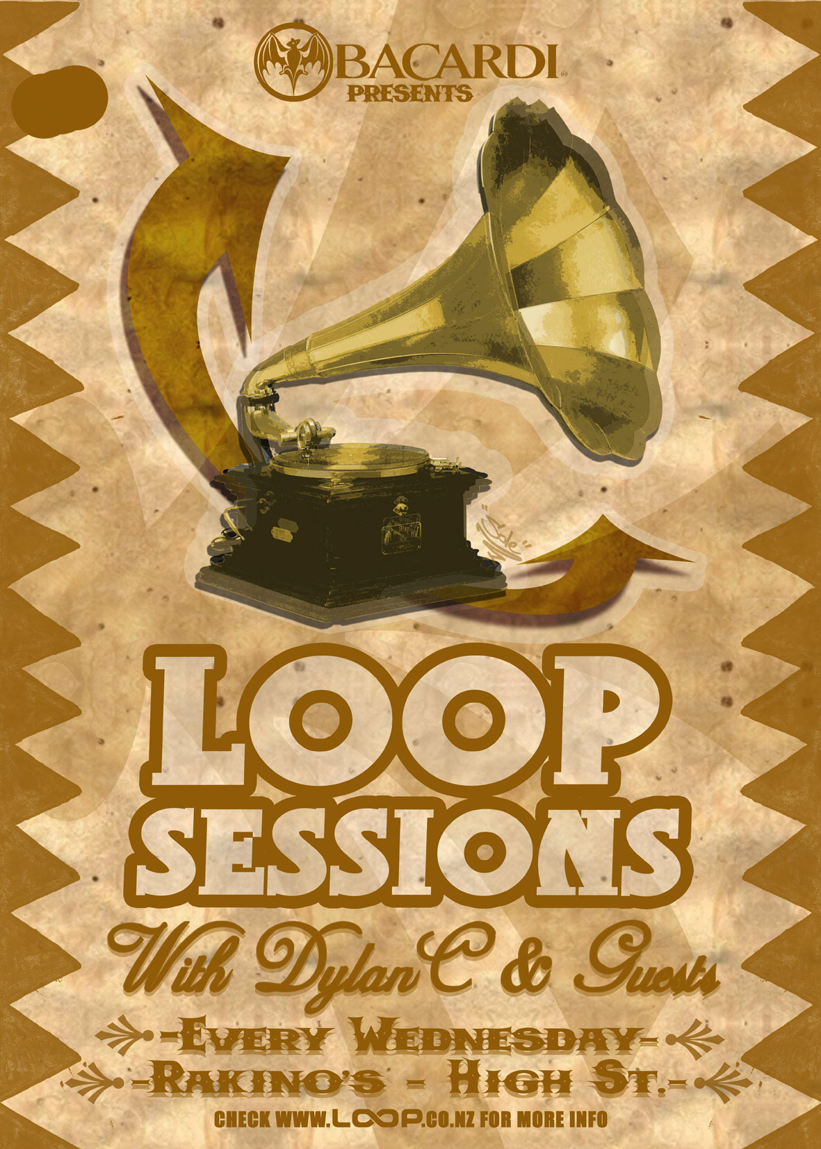 Series of posters developed for Loop Recordings in approx. 2006. Loop Sessions was a regular monthly event hosted by legendary Auckland DJ Dylan C.