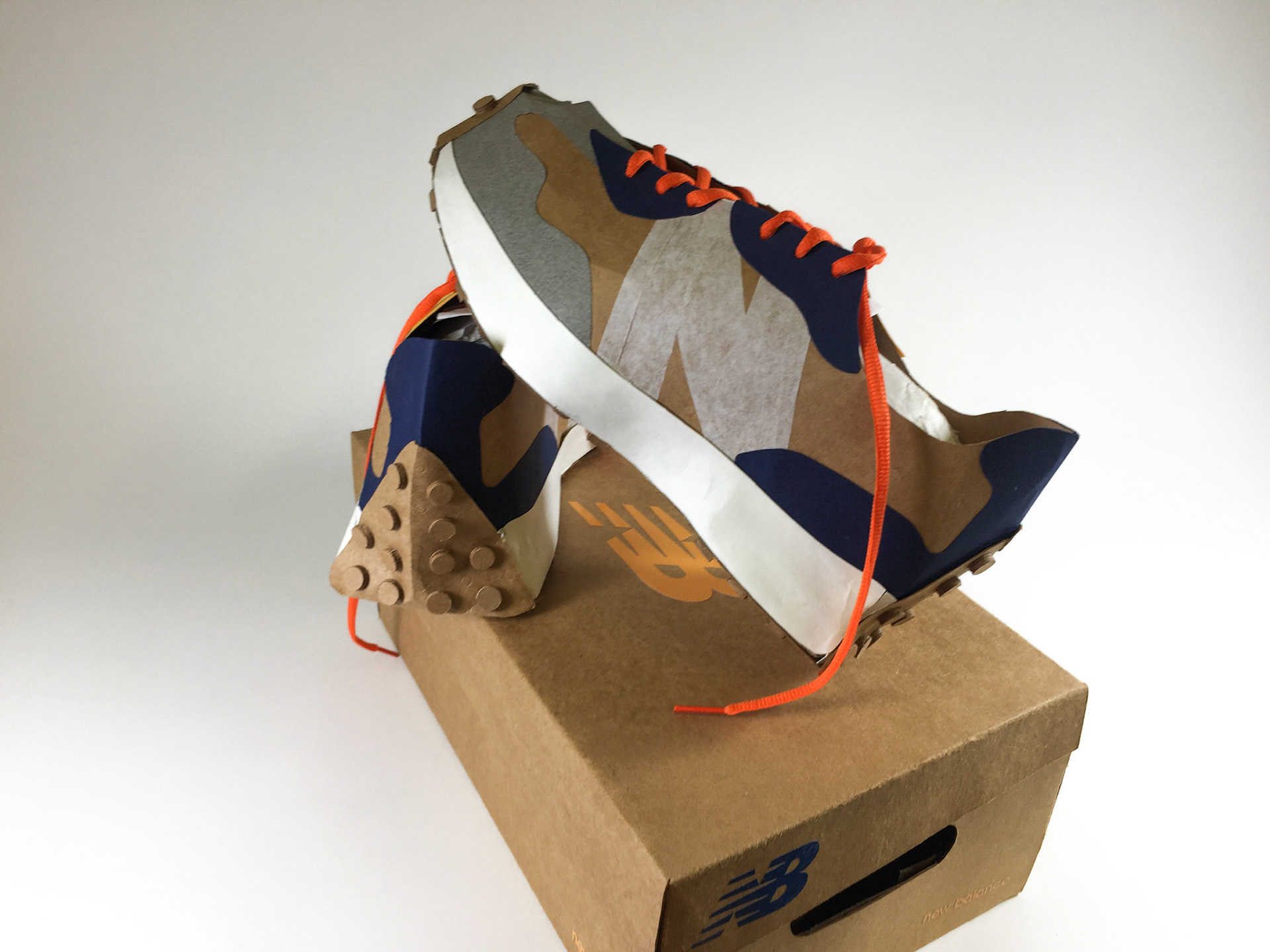 Hand-cut cardboard model based on the iconic New Balance 327 sneakers.